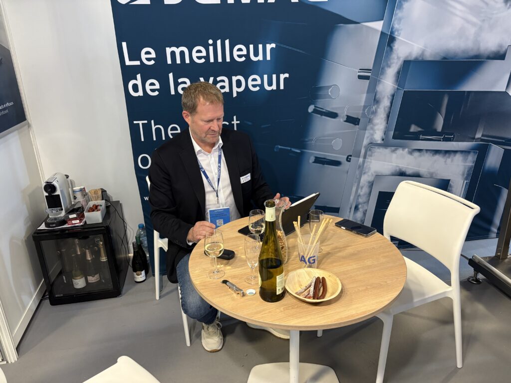 フランス展示会では楽しみが一つある。それは会場でワインを飲むことができることだ。フランス人にとってワインは欠かすことのできない飲み物であり、これはまさに文化そのものである。昼過ぎから各ブースを見回してみるとほぼすべてのブースでワインが開いている。シャンパンを開けているところが多かったように見えたが、ワインだけでなくおつまみも必ず持ってきている。もちろん、私も仕事をしながら飲んだ。半ば同窓会のような場所でシャンパンを酌み交わすのは楽しい!色々な話をすることが出来た。