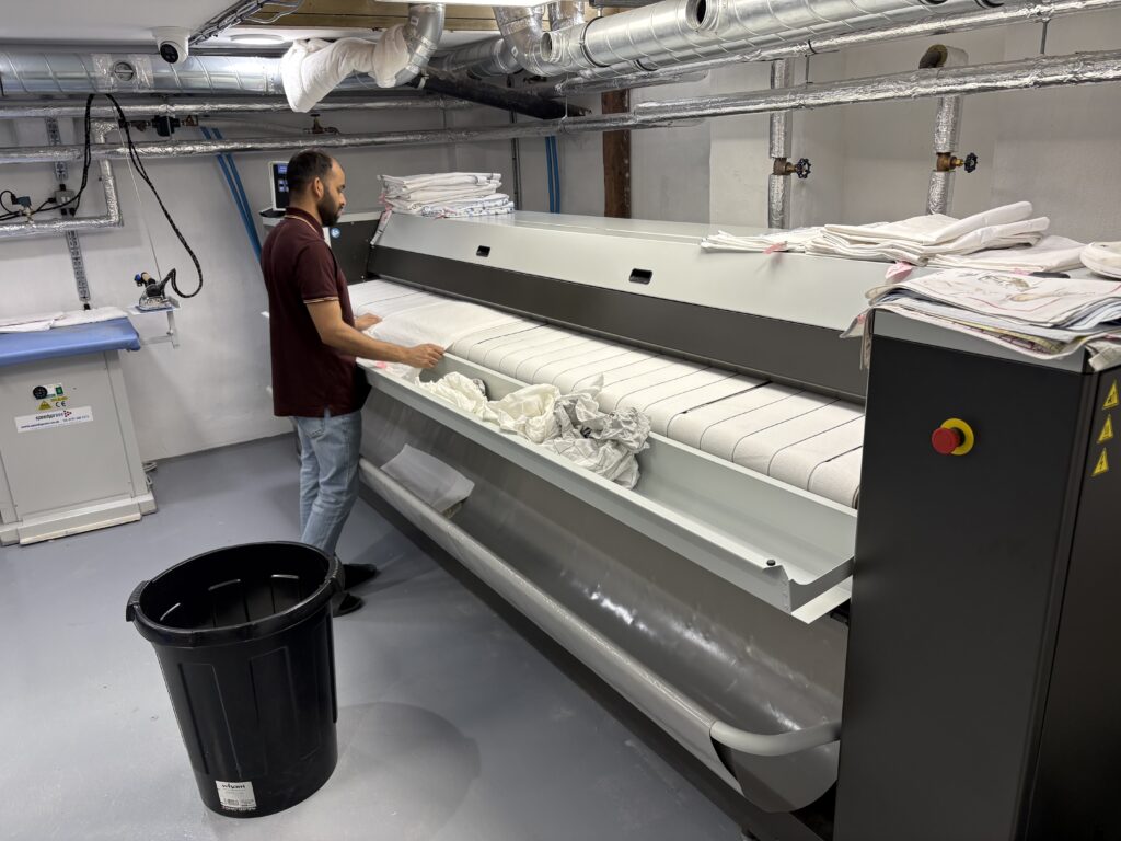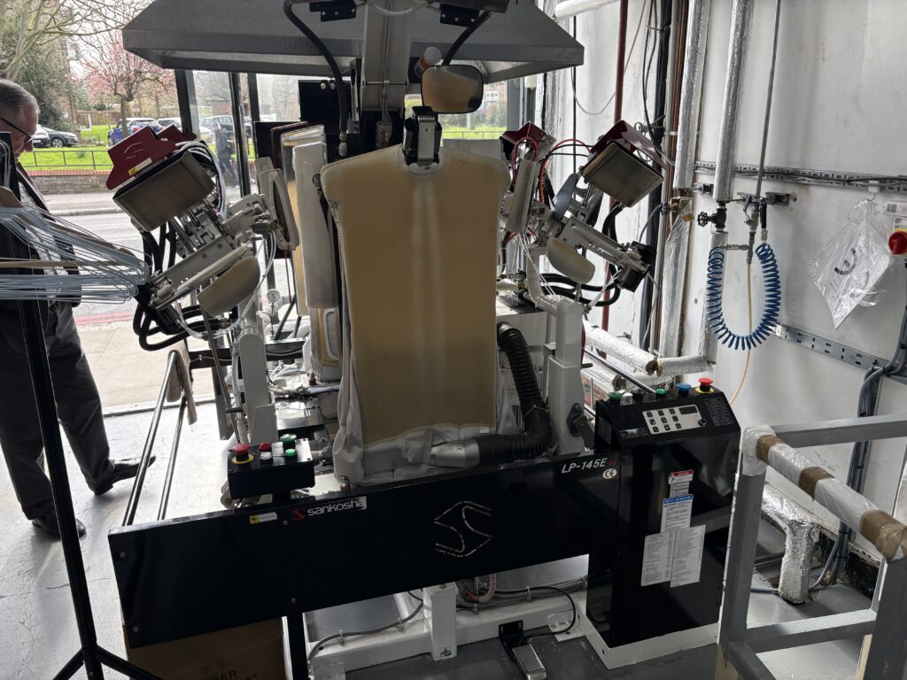 またワイシャツの量が徐々に復活し始めていると感じるそうだ。Sankoshaのワイシャツプレス機も元気に動いていたところを確認できてとても安心した。ちなみにイギリスは確実に人々の体型が変わってきている。昔はアメリカサイズのワイシャツプレス機が売れていたのに対して最近はヨーロッパサイズ(アメリカサイズよりも一回り横幅がスリムなタイプ)か日本サイズのプレス機が売れるようになってきている。同じ国でも体型やシャツの形などは変わっていくものだ、と改めて認識させられる。
